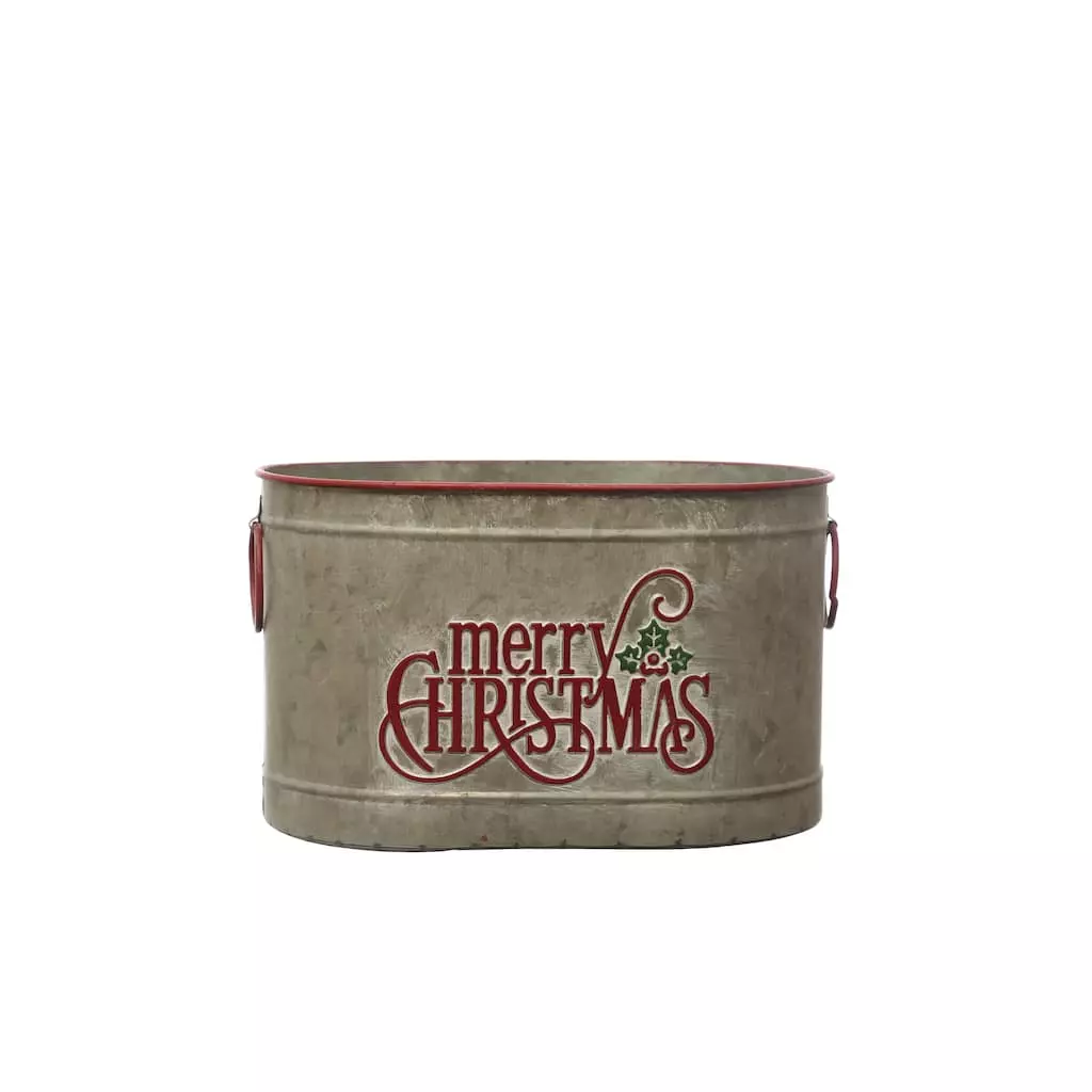 This fun designed bucket will be great addition to your holiday décor. It features galvanized metal with the phrase Merry Christmas sprawled across the front. Use it for small knick-knacks, decorations, florals, plants, and more!
