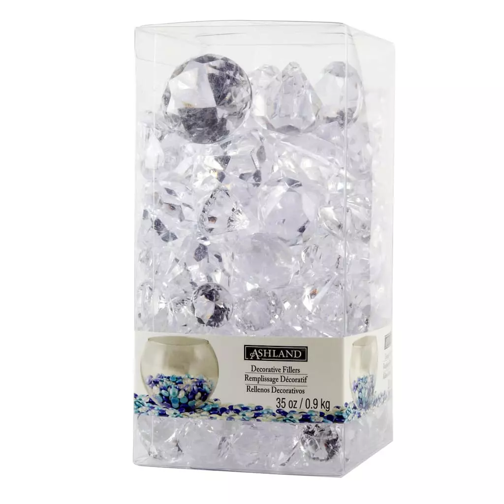 Create beautiful accents using these sparkling, multi-faceted acrylic gems. They’re ideal for wedding ceremonies. Use them to make stunning floral arrangements or as vase fillers.