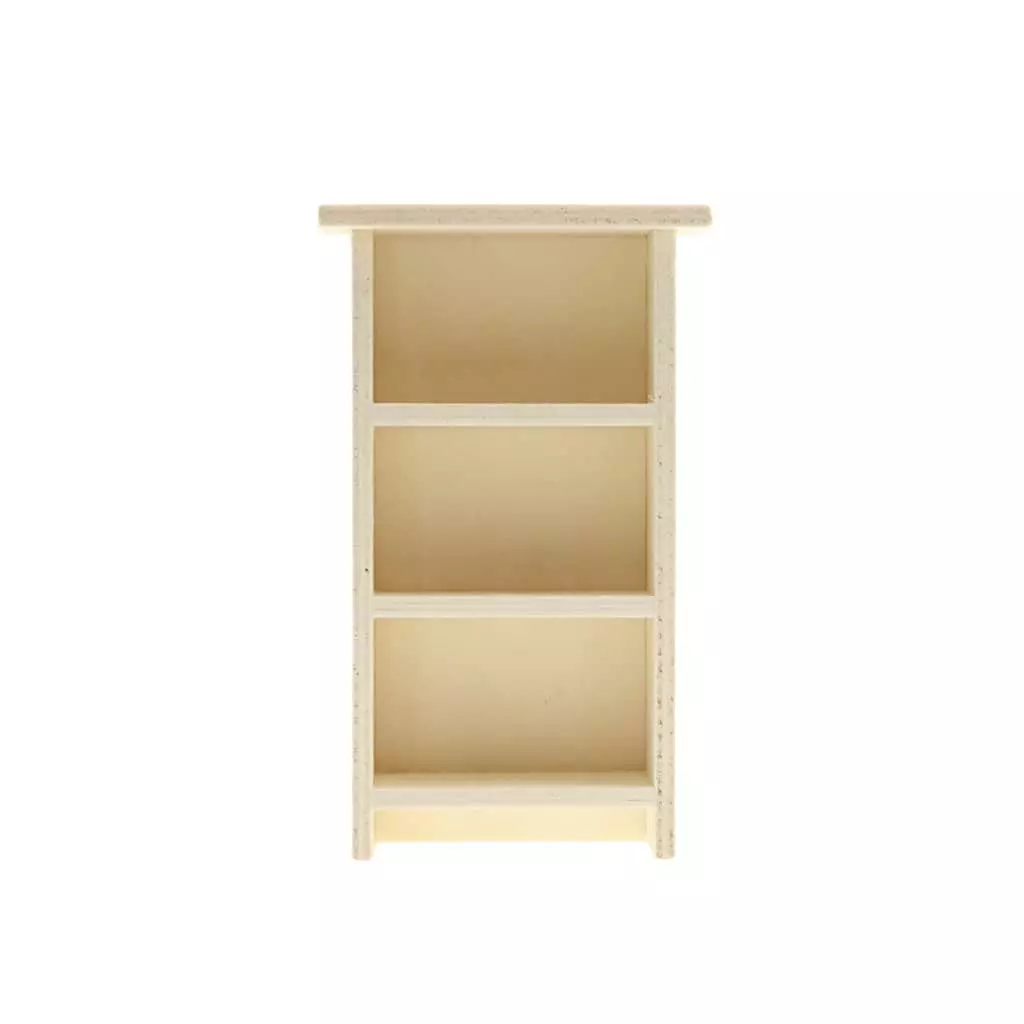 This adorable miniature wooden bookcase, complete with tiny shelves to fill with books, will make a wonderful addition to your dollhouse dรฉcor. Pair it with a miniature chair, plants, rugs and other study accents to complete the display.