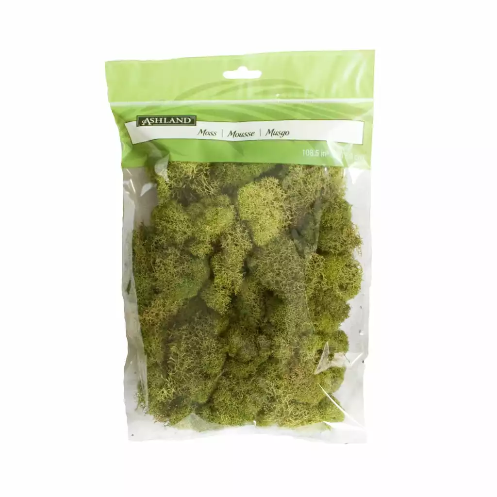 Create the perfect ambiance with preserved reindeer moss. Use it in your arrangements or in crafting seasonal and everyday décor projects. This moss is softened and preserved, making it easy to work with for any floral or craft project. Use it in silk arrangements, potted plants, school projects, glass terrariums and more.