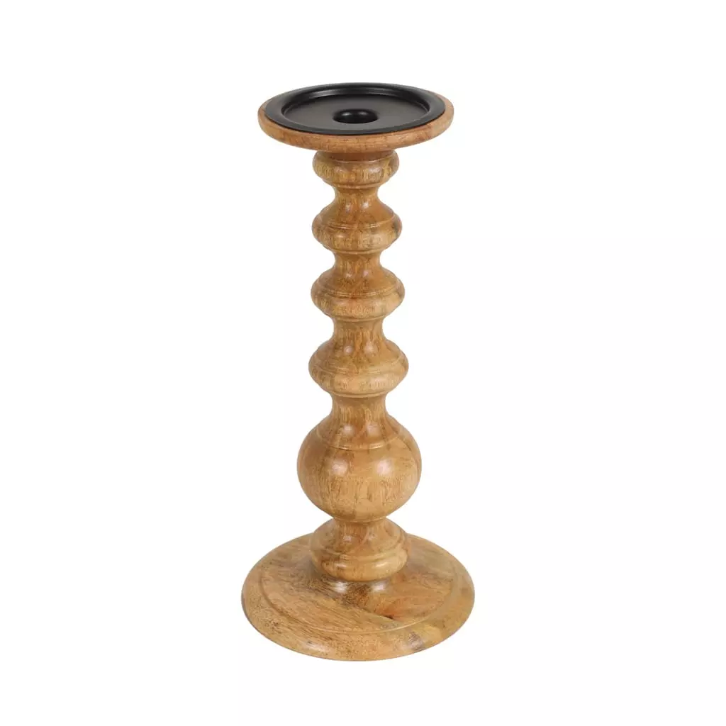 Bring a touch of Christmas magic to your space by incorporating the lovely, soft glow of candlelight into your décor. Paired with a festive pillar candle, this wooden candlestick is sure to add a festive feel to your home illuminating lush greenery and holiday collectibles on your living room mantel or a prominent side table.