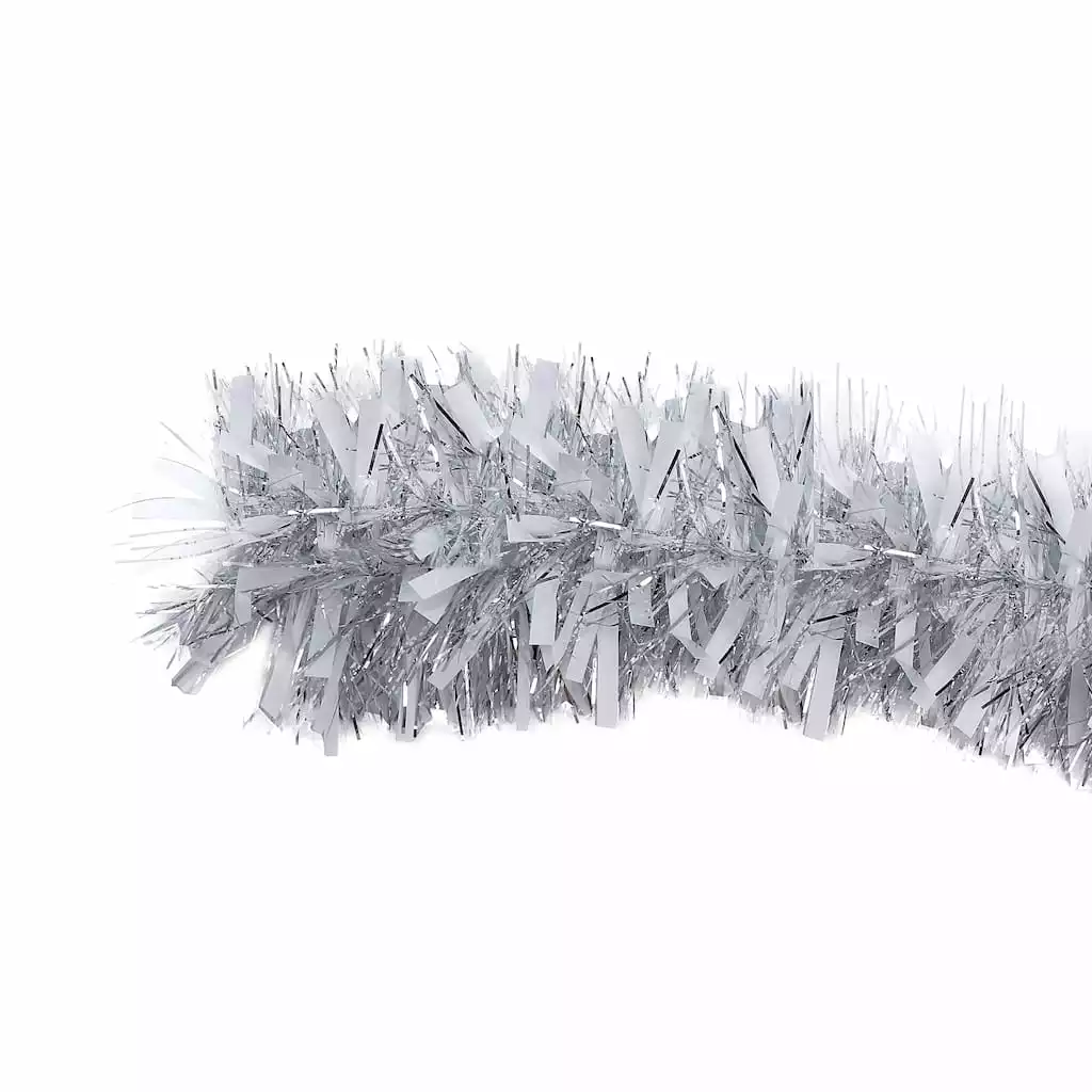 Bring a touch of Christmas magic to your dΓ©cor with this garland made of shimmery silver tinsel. This flashy garland will make a great addition to your tree, or drape across a mantel or banister paired with lights and greenery for a fun, festive display full of holiday cheer.