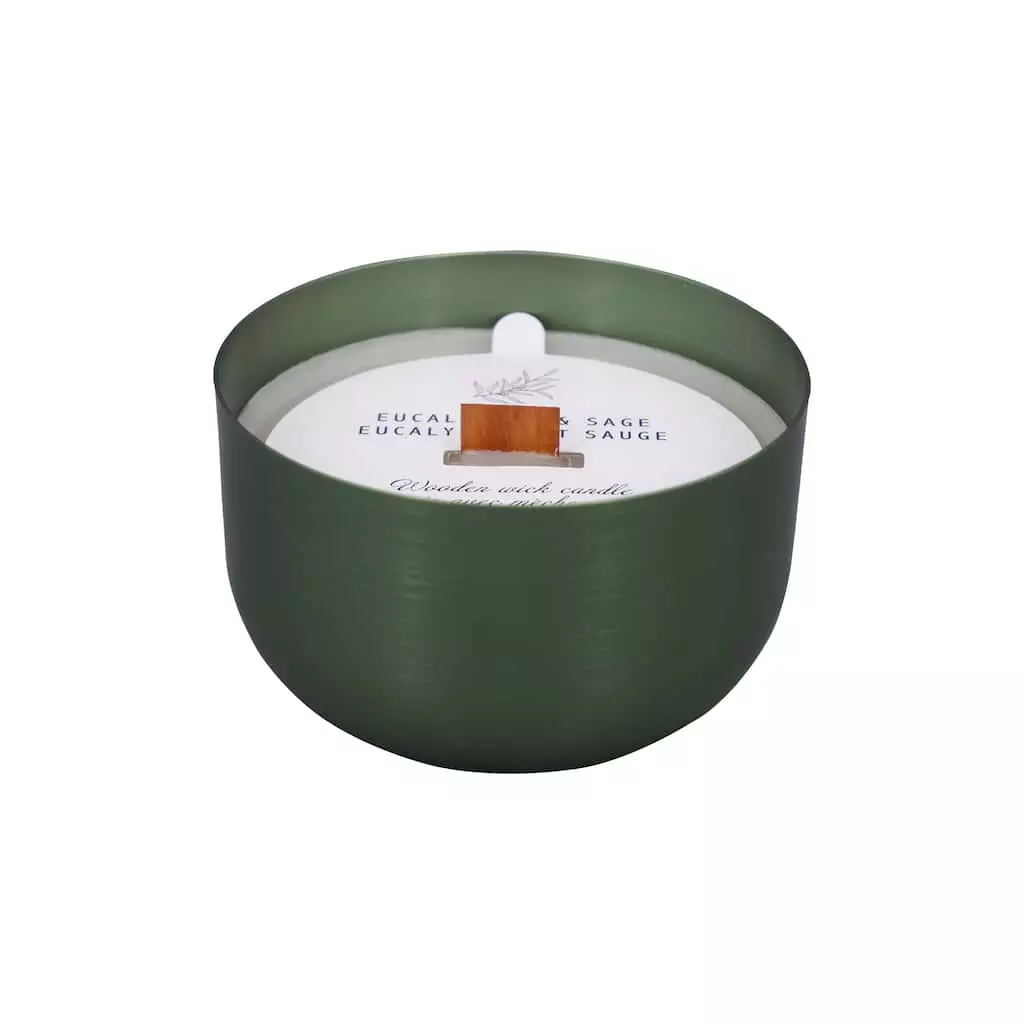 - Paraffin wax, palm wax, metal, wood and fragrance