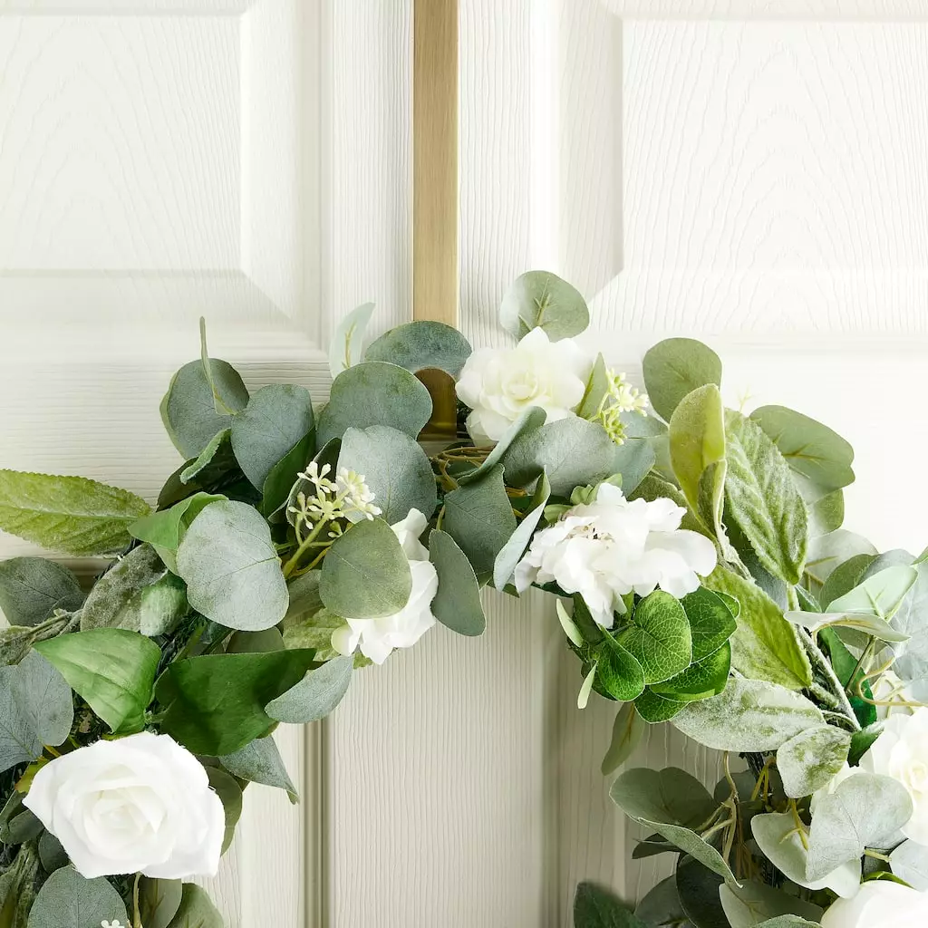Get this wreath hanger by Ashland to create beautiful hanging displays for your home. You can use it to hang wreaths, bows or swags on your door. This lovely metal wreath hanger is easy to use and eliminates the need for nails and screws.