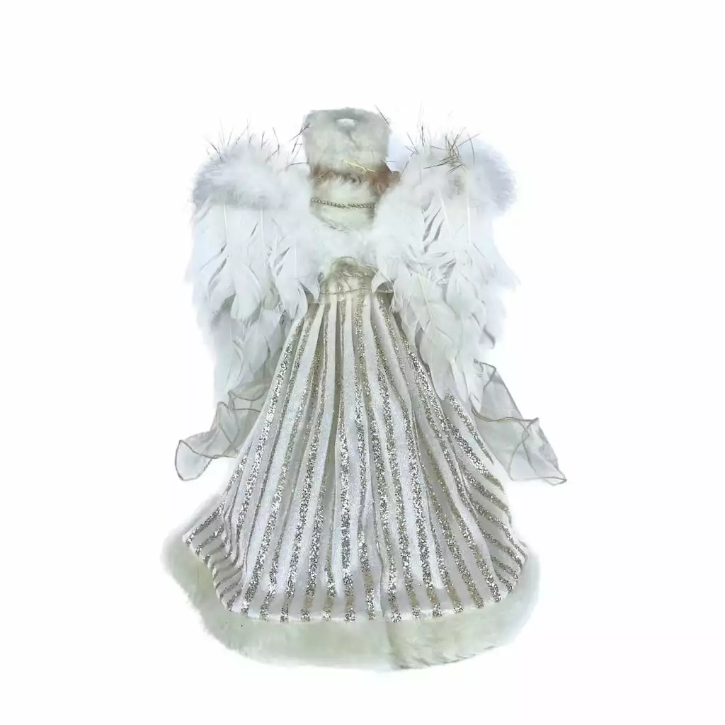 All dressed up in feather-trimmed silver and white robes, this lovely angel figurine is sure to bring festive cheer to your home. Display this charming piece alongside a miniature lit evergreen decked out in sparkly ornaments on your mantel for the holiday season.
