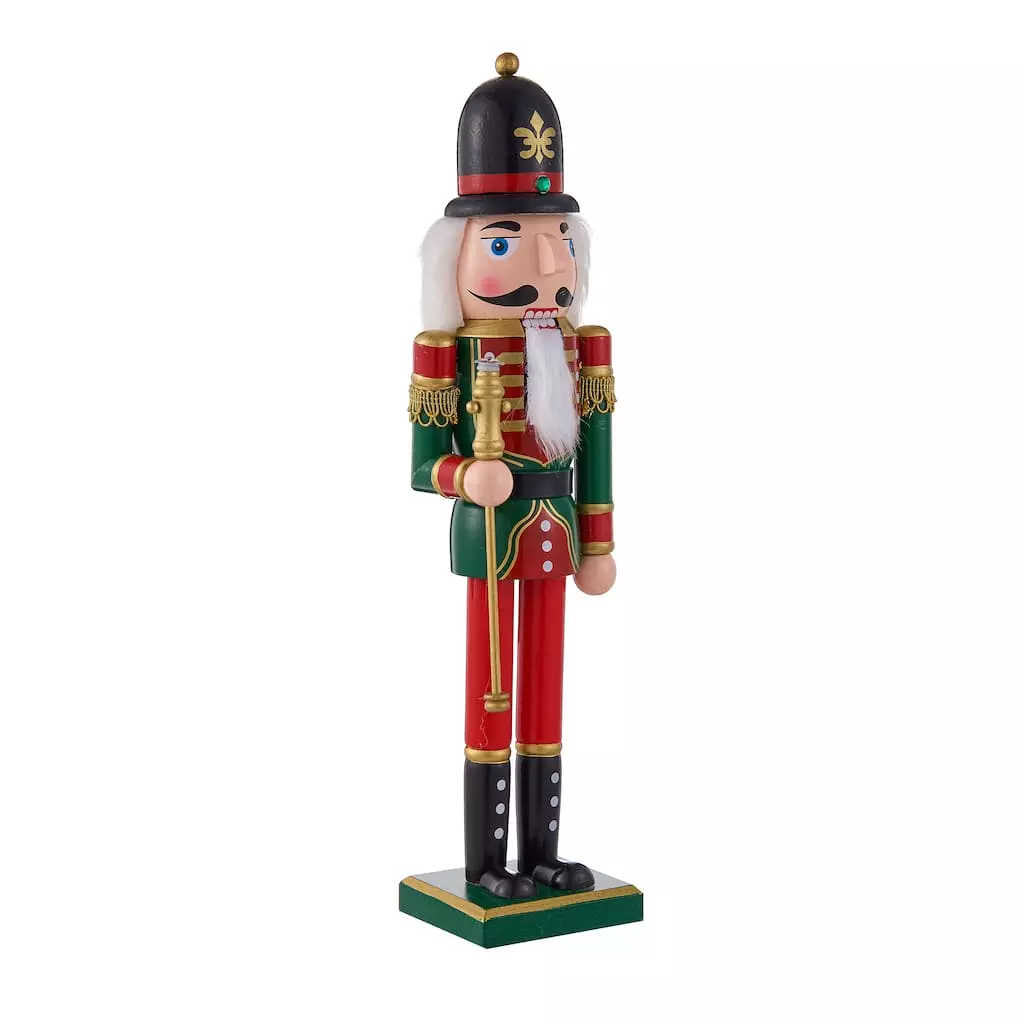 Give a classic holiday tradition a fun twist with this festive nutcracker. This nutcracker will make a fantastic addition to your décor set on your mantel with sparkly ornaments and a sign with a friendly holiday saying.