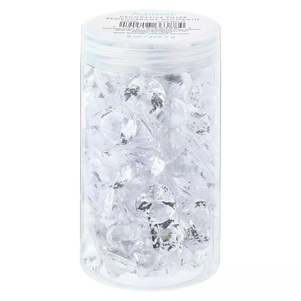 Use this diamond scatter to embellish your DIY floral arrangements and tabletops. With sheer elegance, these acrylic gems effortlessly bring sparkle to any setting. These dazzling diamonds can also be used as embellishments for your party or wedding decor.
