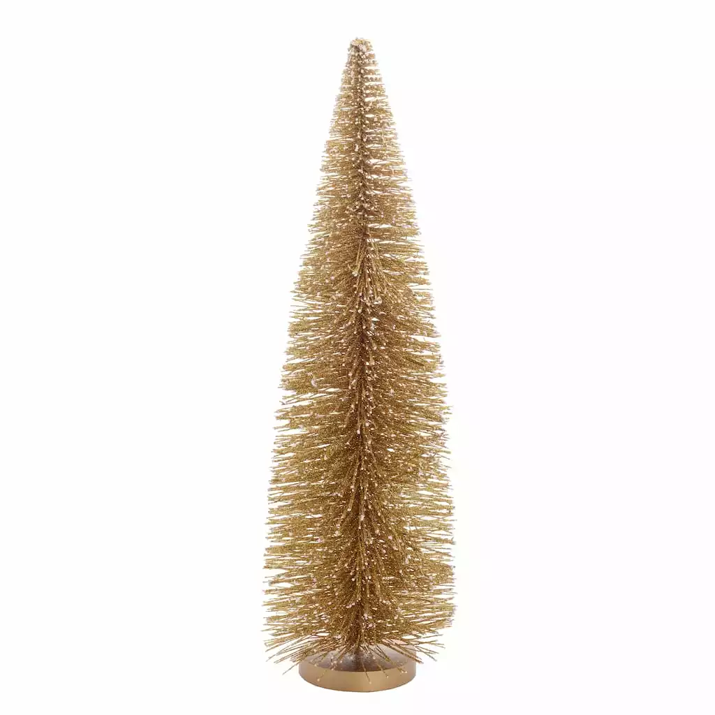 Bring depth and charm to your Christmas decorating with this darling gold bottle brush tree from Ashland. Display alongside wooden reindeer and bird figurines nestled in faux snow on your mantel for a magical winter scene to celebrate the holiday season in your home.
