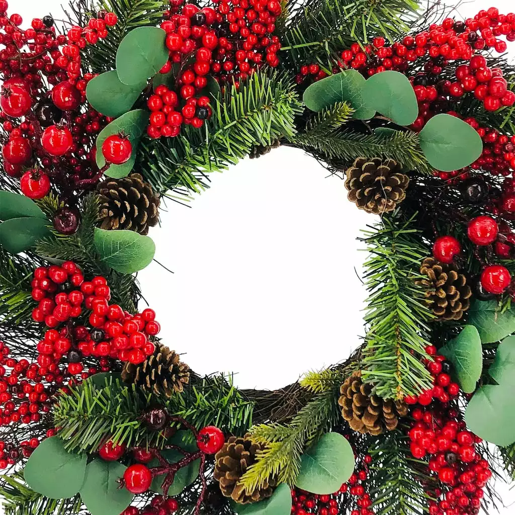 Warmly welcome guests to your home with this charming holiday wreath from Ashland. With a festive gathering of berries, eucalyptus and pinecones, this piece will look lovely displayed on your front door or over your mantel for the Christmas season.