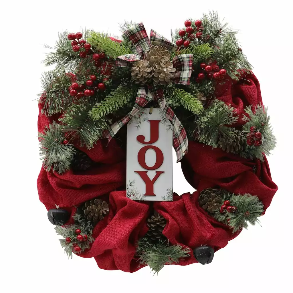 This joy sign wreath is perfect for showing off in your living area. Place it on your wall, window, or mantel to lend your home a festive touch.