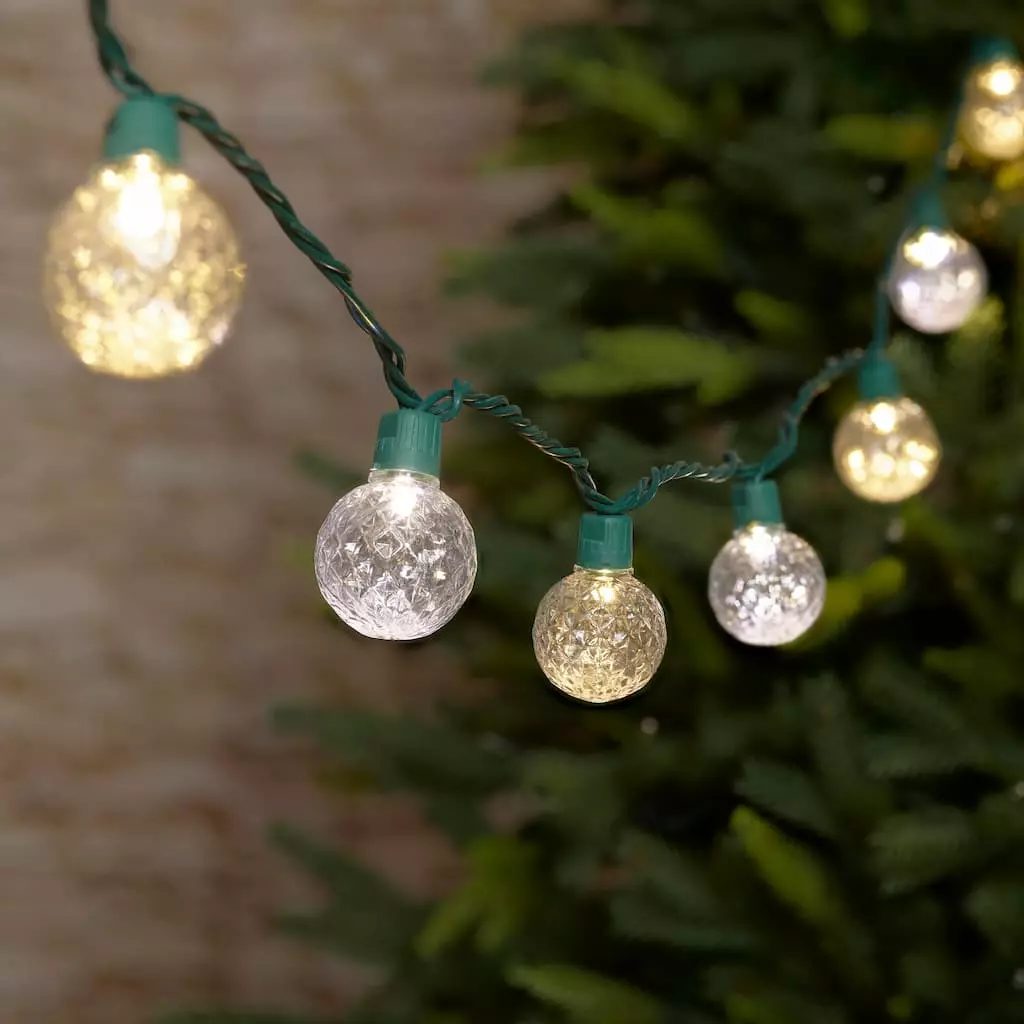 Make the season bright with these festive string lights from Ashland! These diamond cut globe bulbs on a classic green wire can be used both indoors and out and feature a mix of warm white and dual color cool white twinkle lights. Use to add a unique sparkle to your holiday tree, intertwine with garland draped along a banister or incorporate into your outdoor décor for an extra touch of the Christmas spirit.