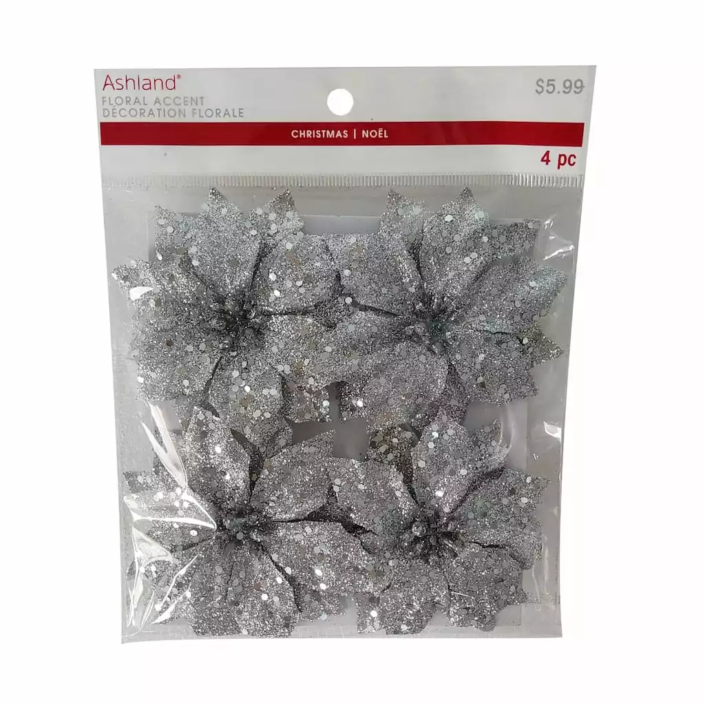 These poinsettia accents are perfect for your DIY holiday projects. Each flower features a beautiful sparkly finish!