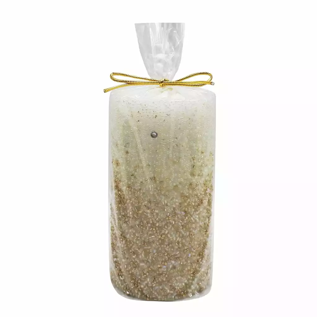 Add a enchanting touch to your Christmas decorations by incorporating the soft glow of candlelight. This pretty pillar candle paired with an elegant candle holder is sure to bring a festive ambiance to your space.