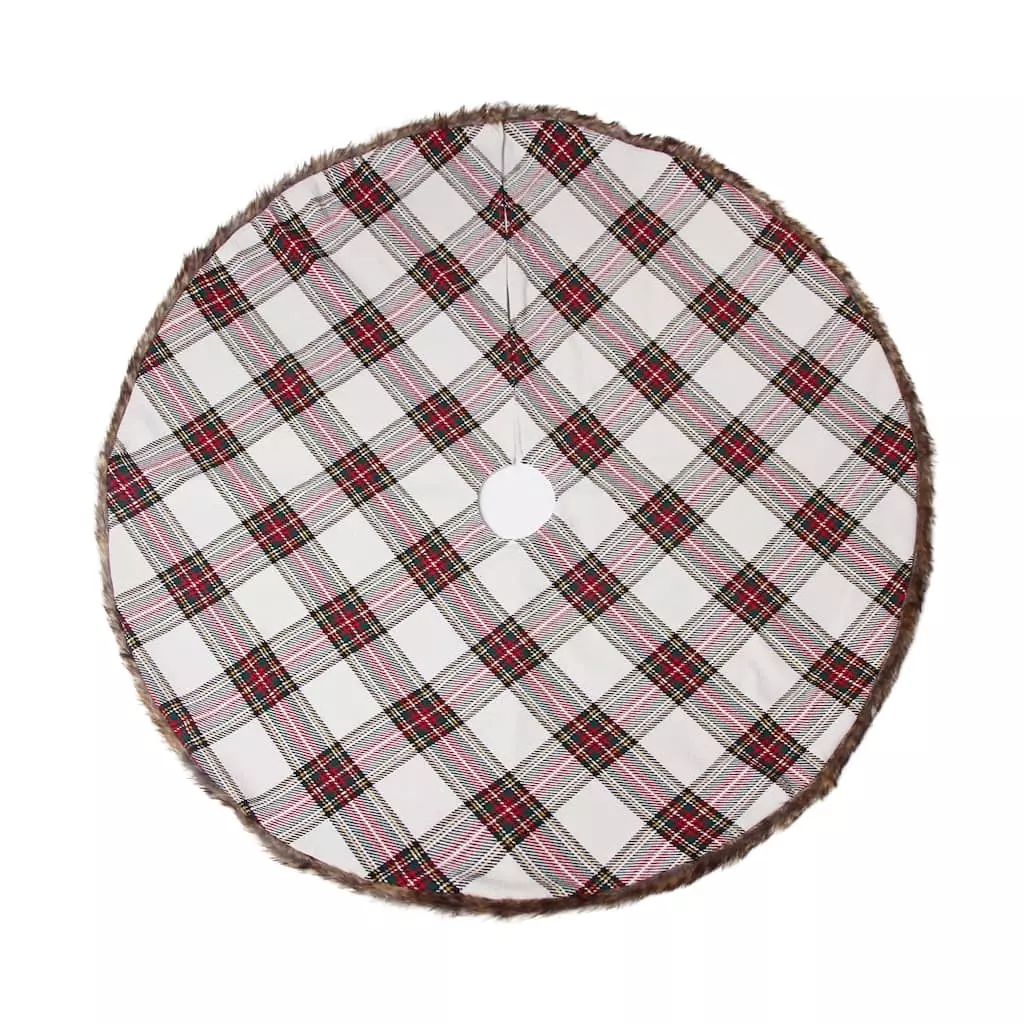This white and red plaid tree skirt is guaranteed to complement your tree. Team it with bright tree ornaments and lights for the perfect holiday display.