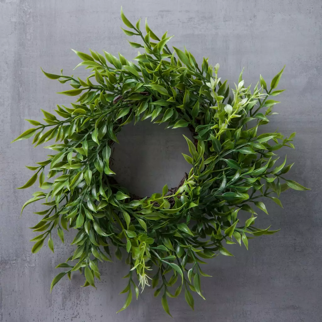 Add some lush green hues to your dรฉcor with this ficus wreath by Ashland. You can also accentuate it with burlap ribbons.