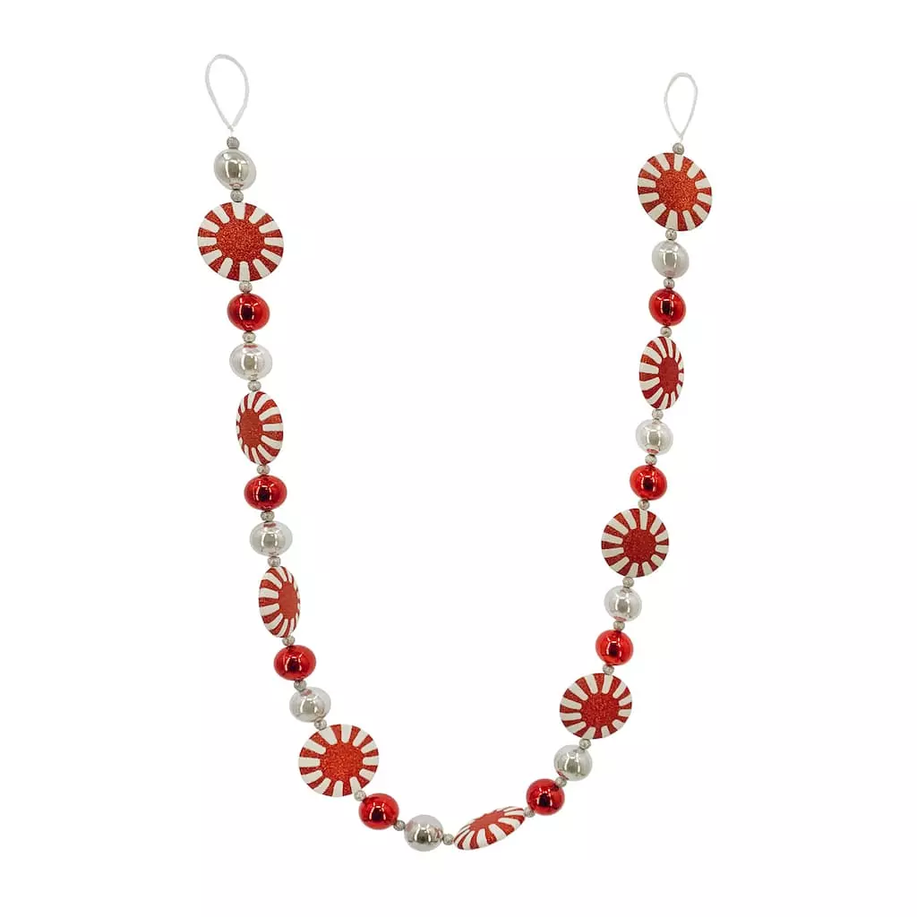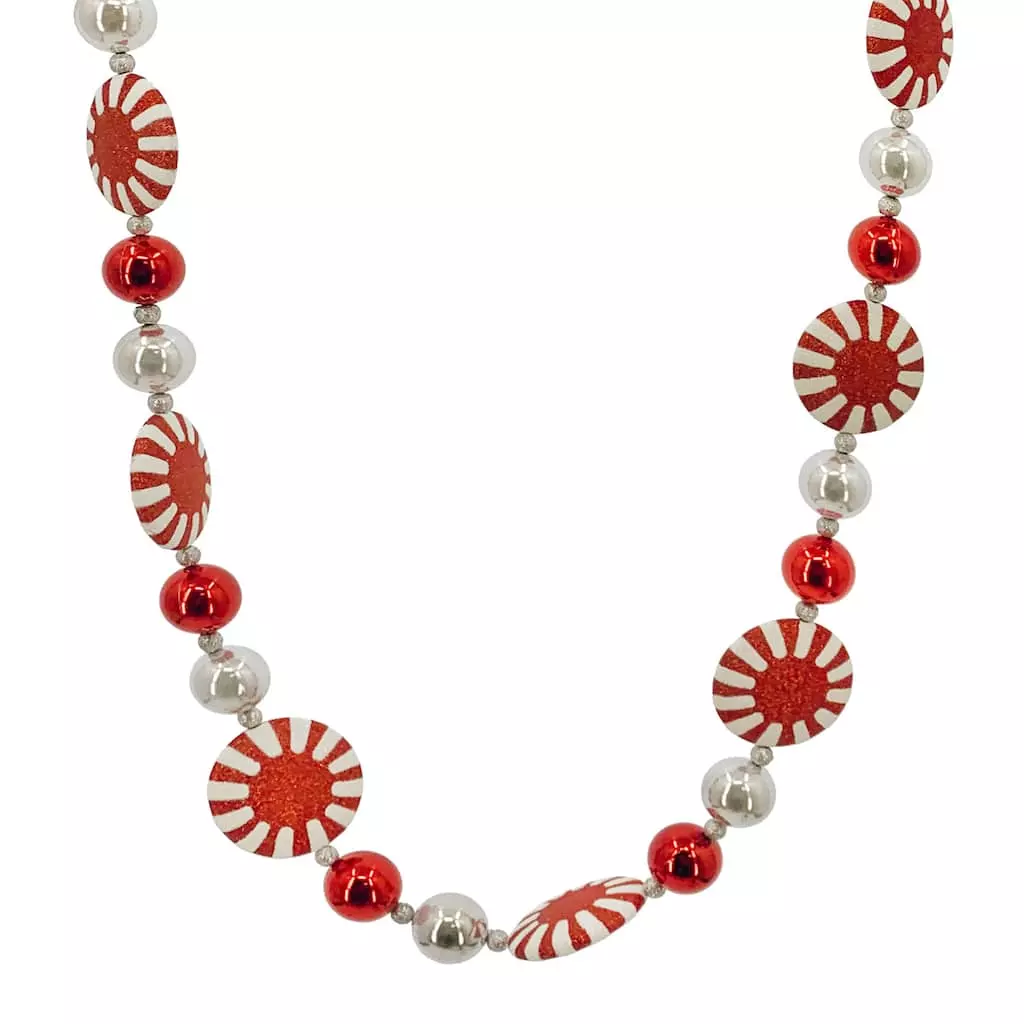Bring a touch of Christmas magic to your decorating with this lovely garland of glittery peppermint candies and shiny beads. This shimmery string makes a great addition to your tree, or drape over a doorframe, mantel or bannister as is or with added lights and ribbon for a festive display full of holiday cheer.