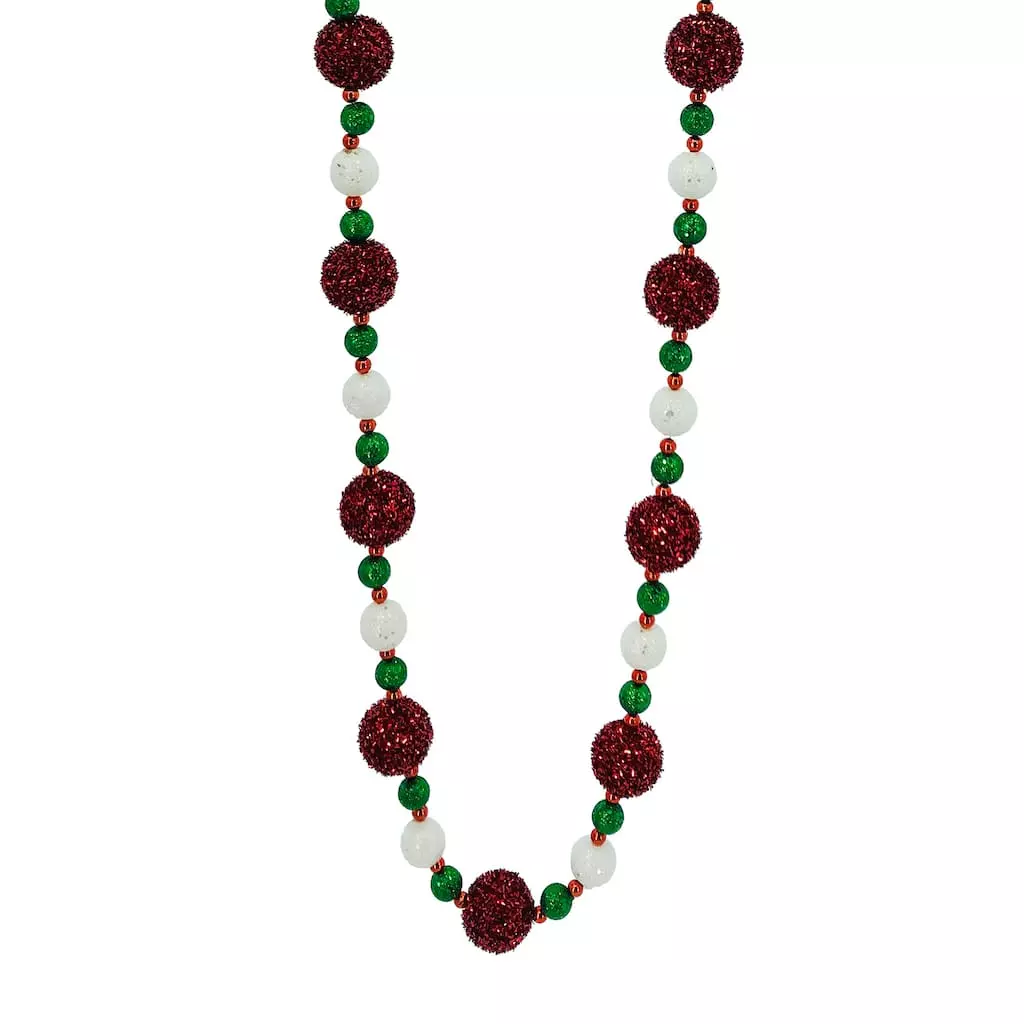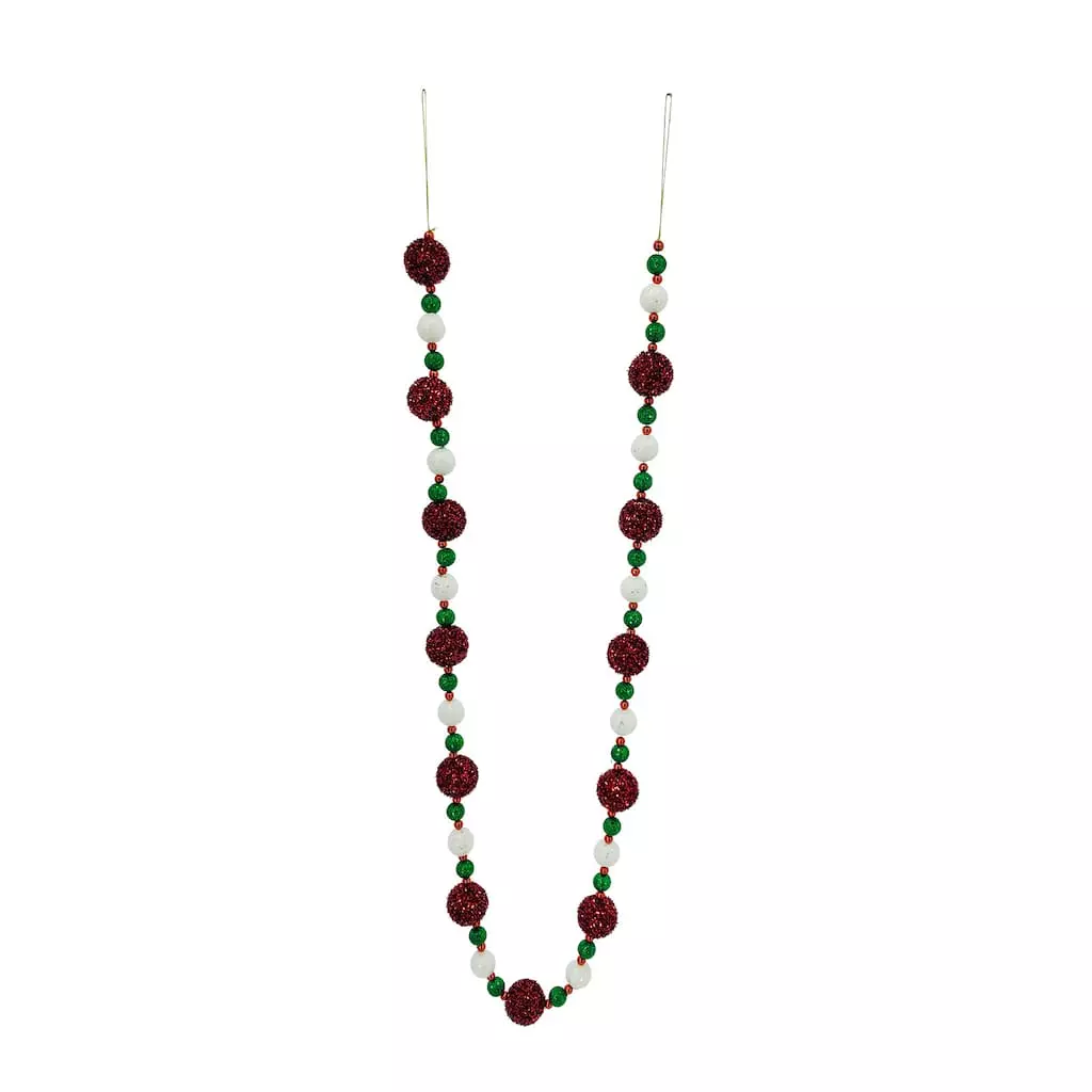 This red, green, and white pom-pom and bead garland is perfect for lending your home a festive holiday vibe. Display it on a mantel, wall, or window to complete the look.
