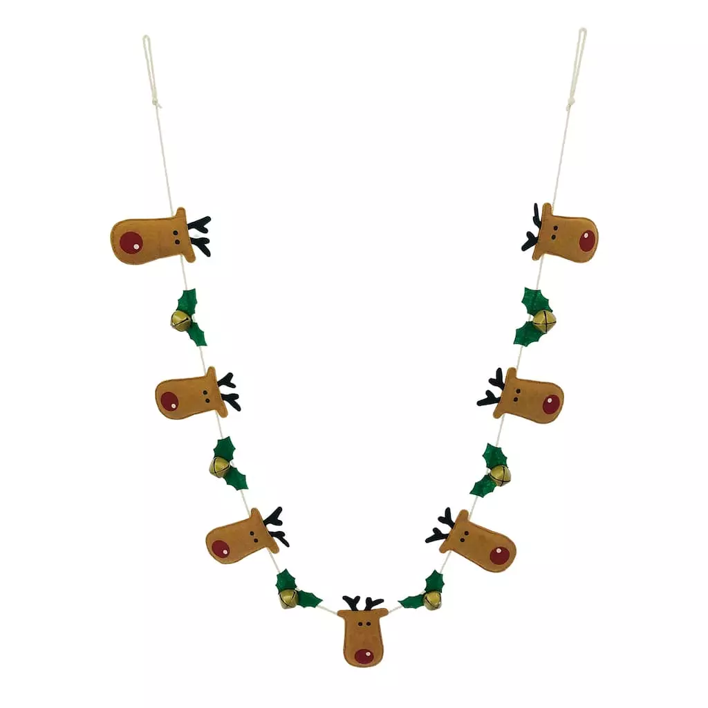 This fun garland featuring reindeer and bells will be a lovely touch to your Christmas decorating. Hang over a doorway or drape over the mantel to give your home a festive touch.