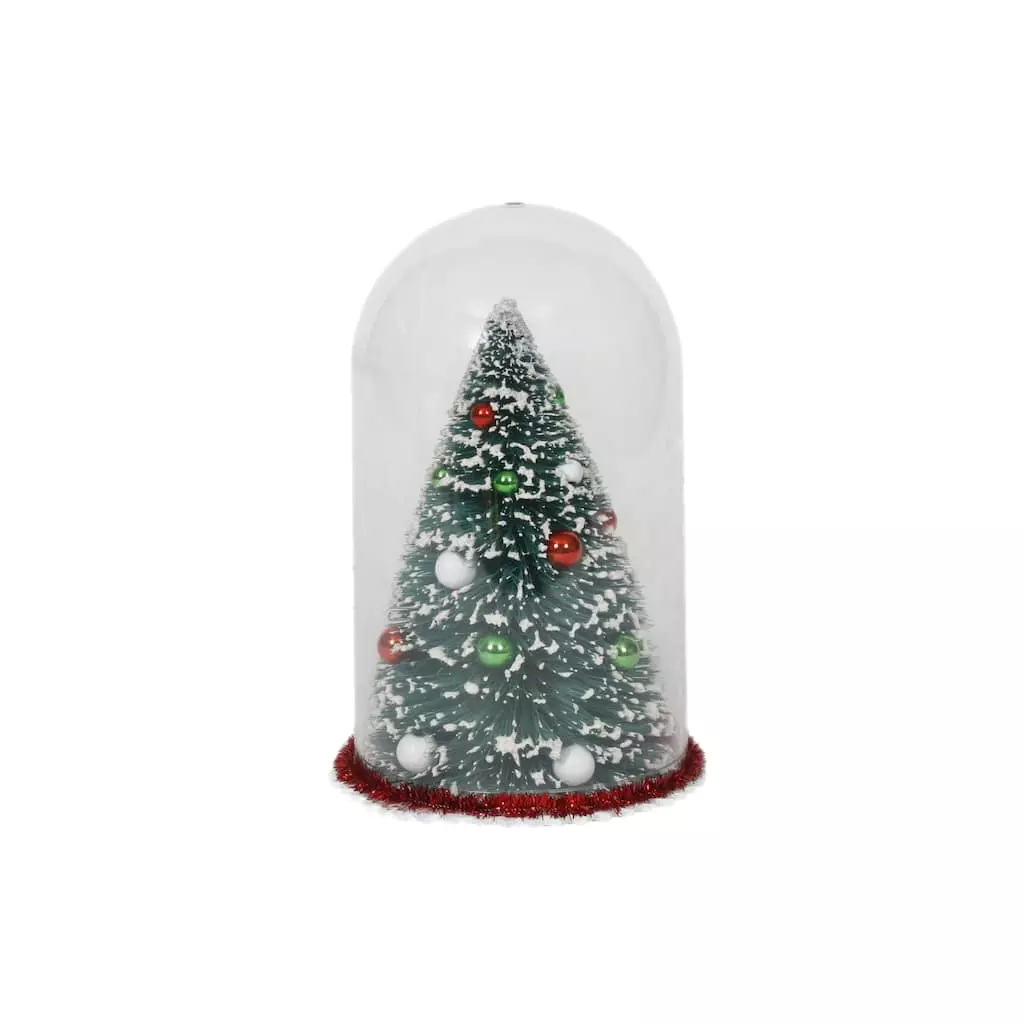 This festive tree is placed inside of a dome and designed with ball ornaments to enhance your holiday dรฉcor. Put it on your entryway table, desk, or mantle, or any area for added Christmas cheer.