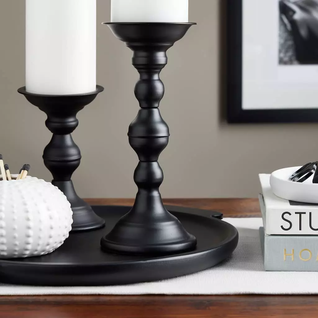 Decorate your home with this stunning black candle holder by Ashland. Create a display or centerpiece by placing this candle holder with floral arrangements and an LED candle.
