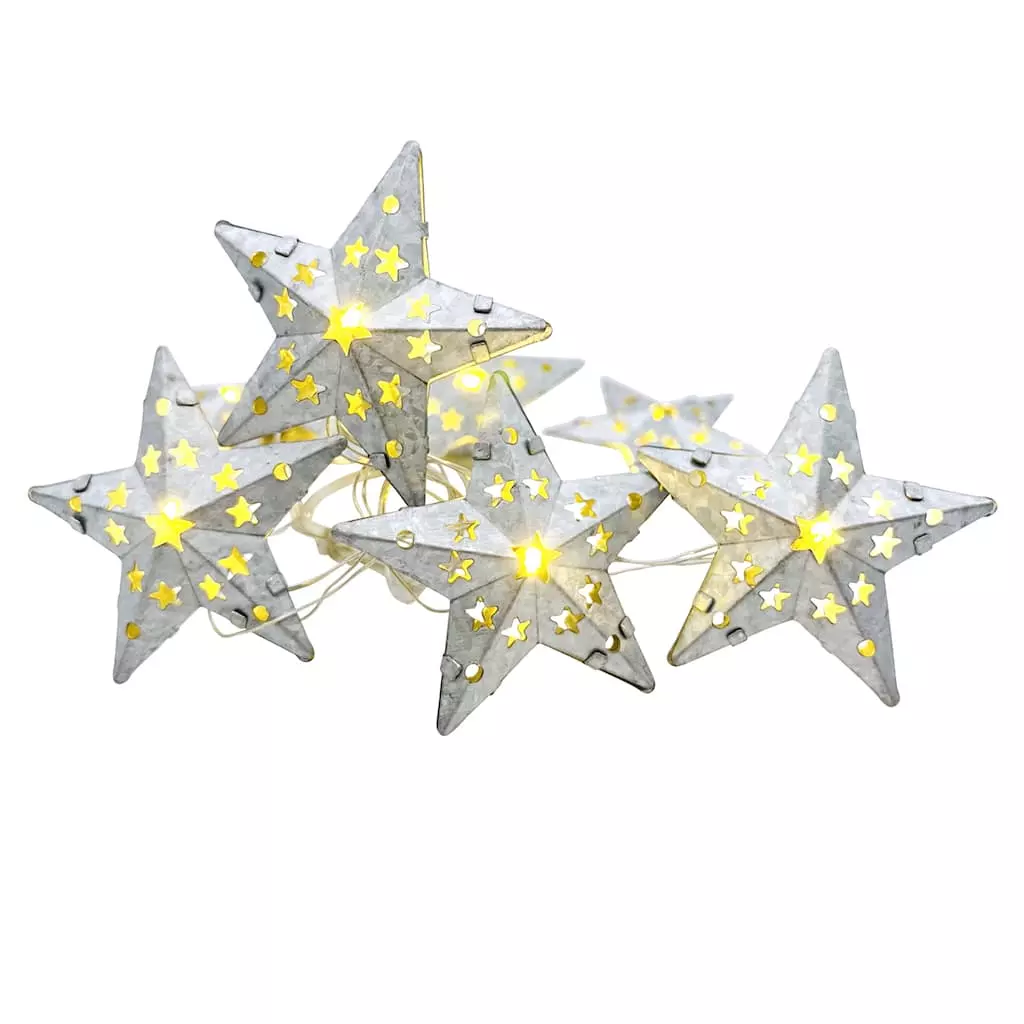 Make the season bright with these festive pierced metal star crafting lights from Ashland! These battery-operated warm white LED bulbs on a silver wire feature steady burning, fading and flashing light settings and a timer. These lights are ideal for use in handmade gifts and lit holiday floral décor to display in your home for the Christmas season.