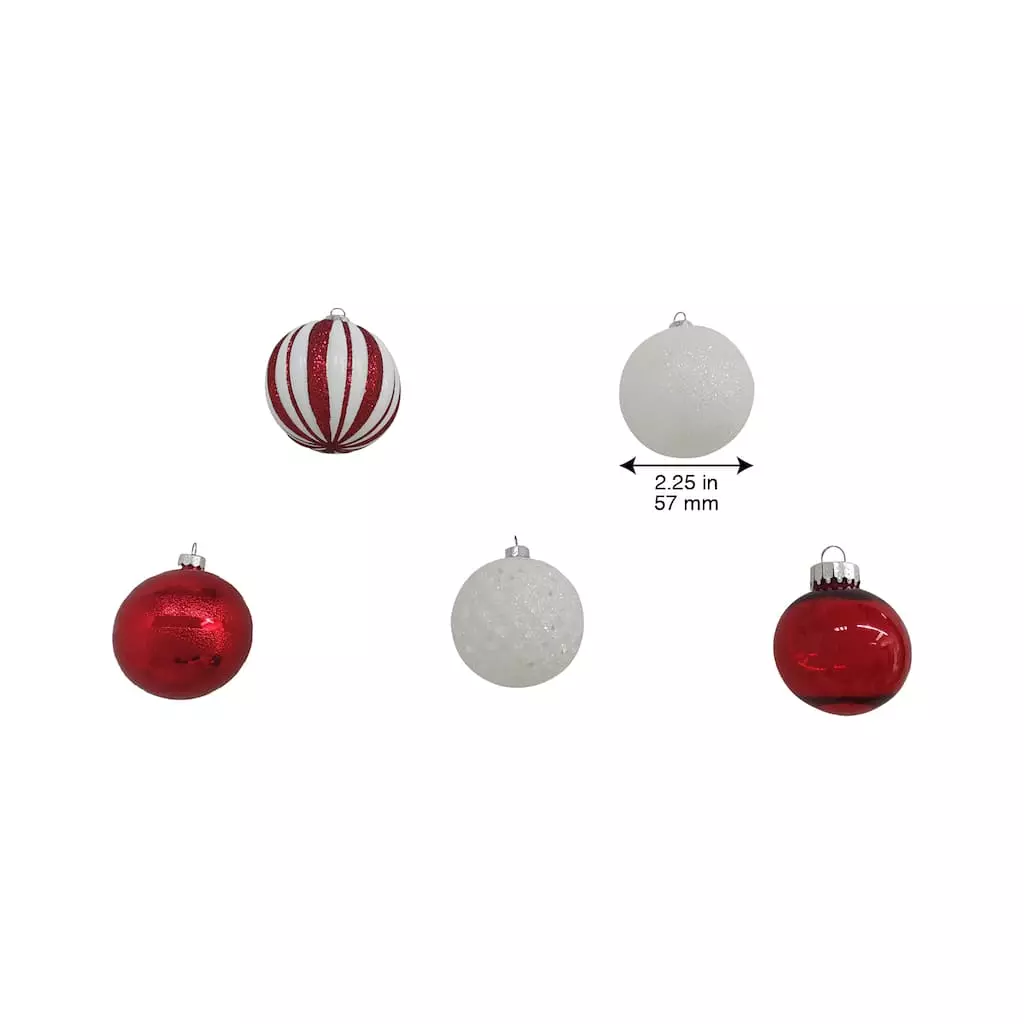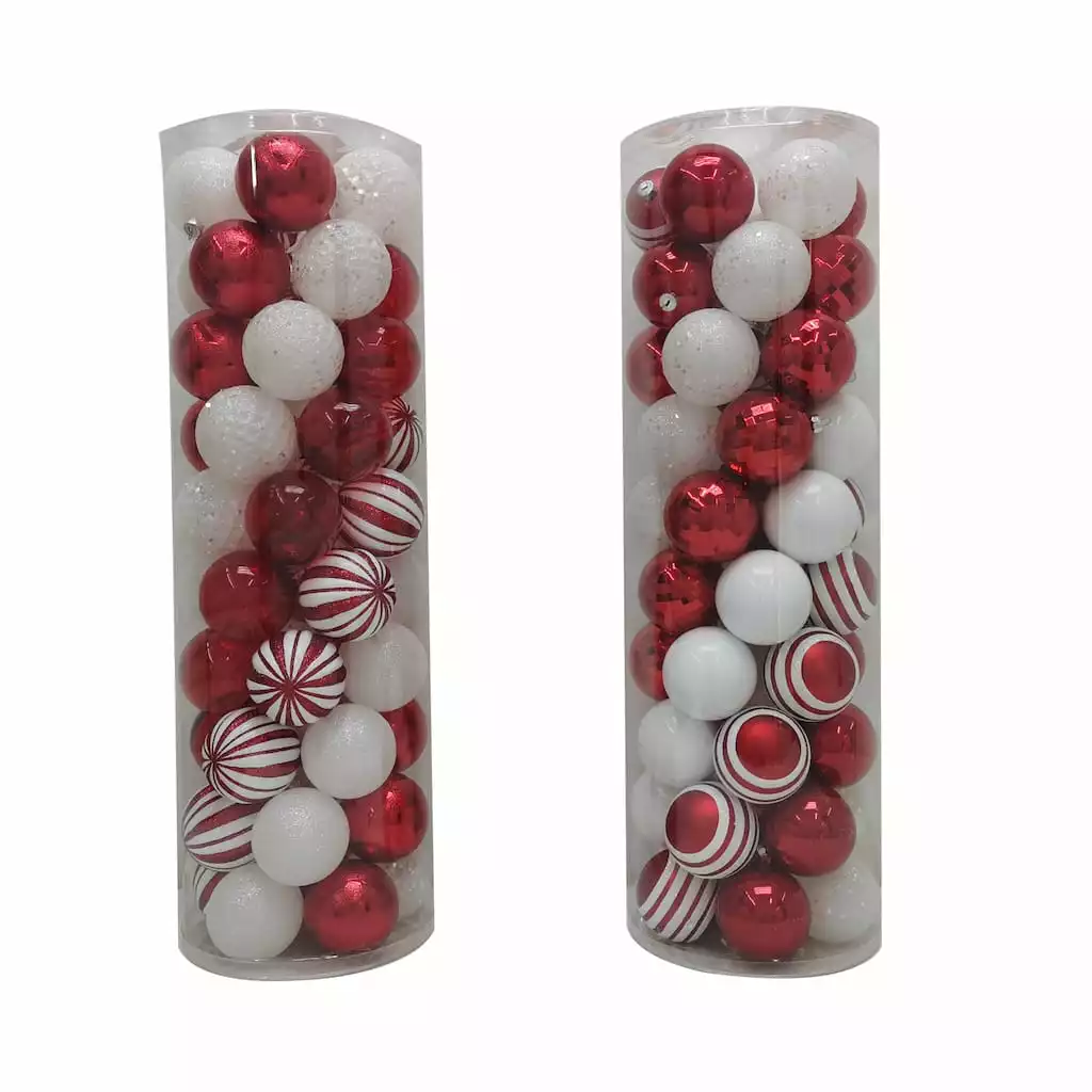 This set of 50 classic red and white ball ornaments are a must-have for your holiday decorating. Decorate your tree, add to a DIY garland, or use these ornaments for table decorations.