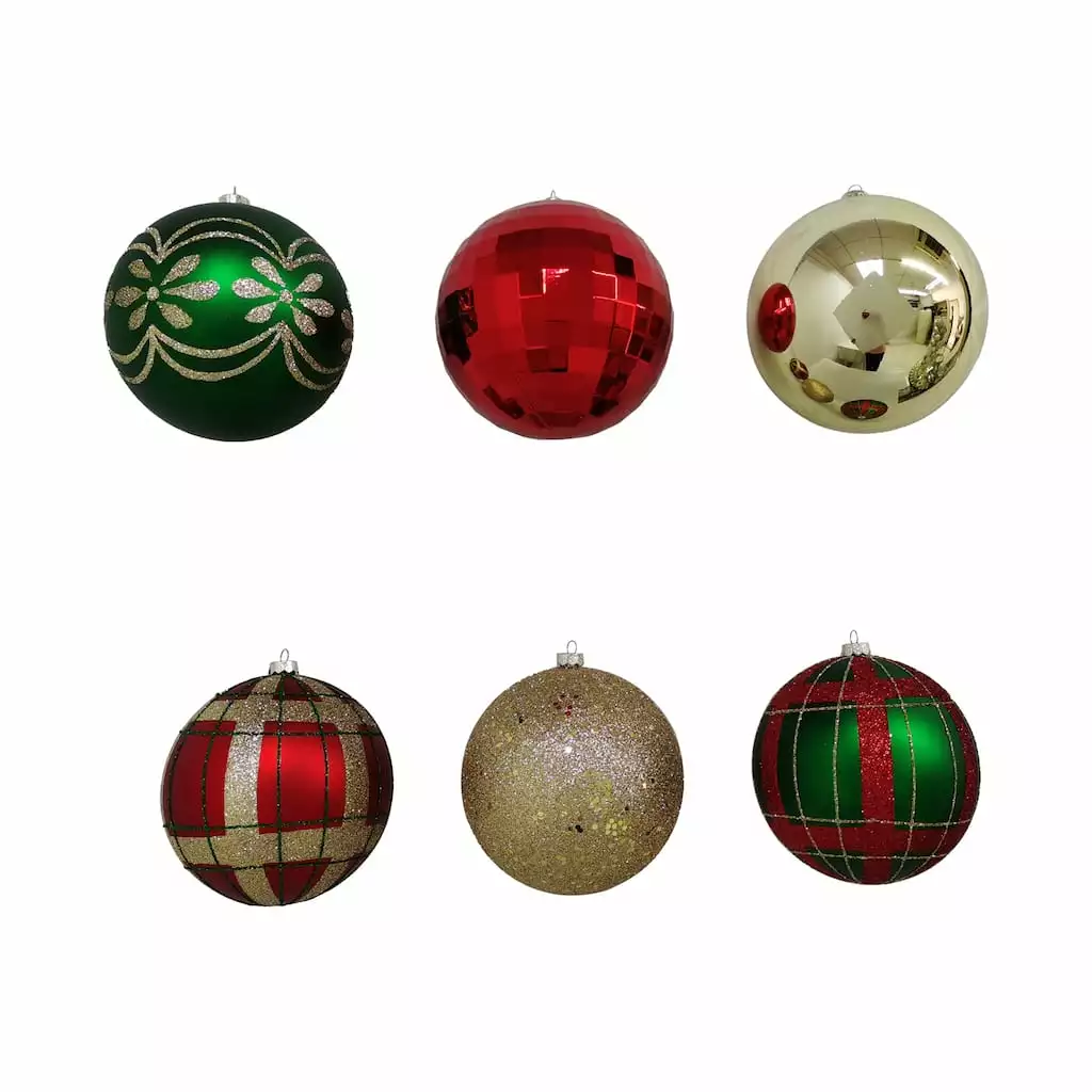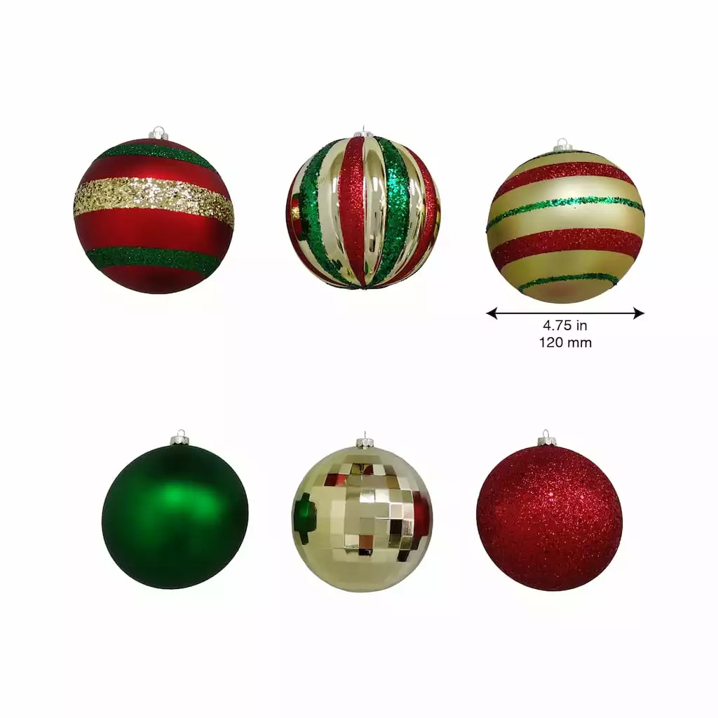 Give your holiday tree touches of shimmer and shine using this set of red, green and gold ball ornaments in a variety of patterns, textures and finishes. Their shatterproof design combines the beauty and luster of real glass with the unbreakable practicality of plastic, making them a great choice for bringing a bit of worry-free Christmas cheer to your décor.