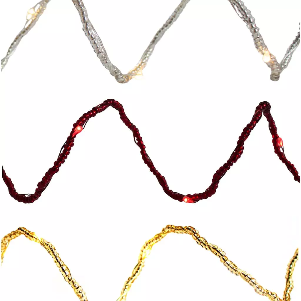 Create a festive lighting display with this tiny beaded LED string light set. Perfect for Christmas, add these lights with pine garlands or floral centerpieces to complete the look. The light functions include flashing, fading and steady on.