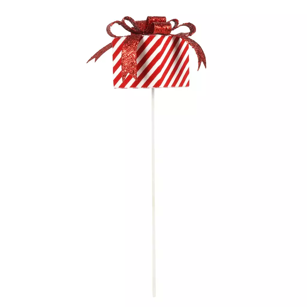 Add a fun, festive touch to your holiday décor by adding this adorable gift box pick to your wreaths and floral arrangements. Use to give a little playful Christmas cheer to a vase of vibrant red blooms and lush greenery on a mantel or entryway table in your home.
