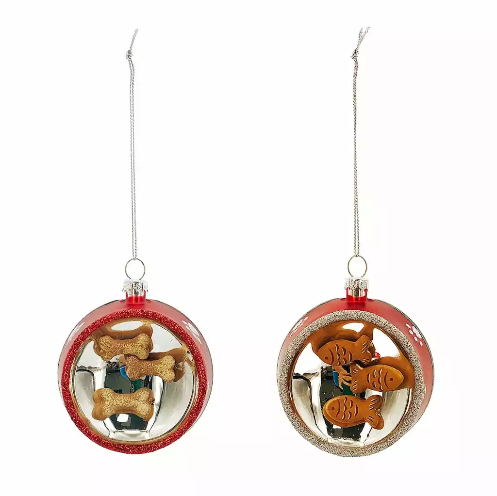 Add a bit of your love for your furry friend to your holiday tree with this fun glass ornament. Shaped like a bowl full of kibble with glittery details, this ornament is sure to bring a smile to your loved ones faces this Christmas.