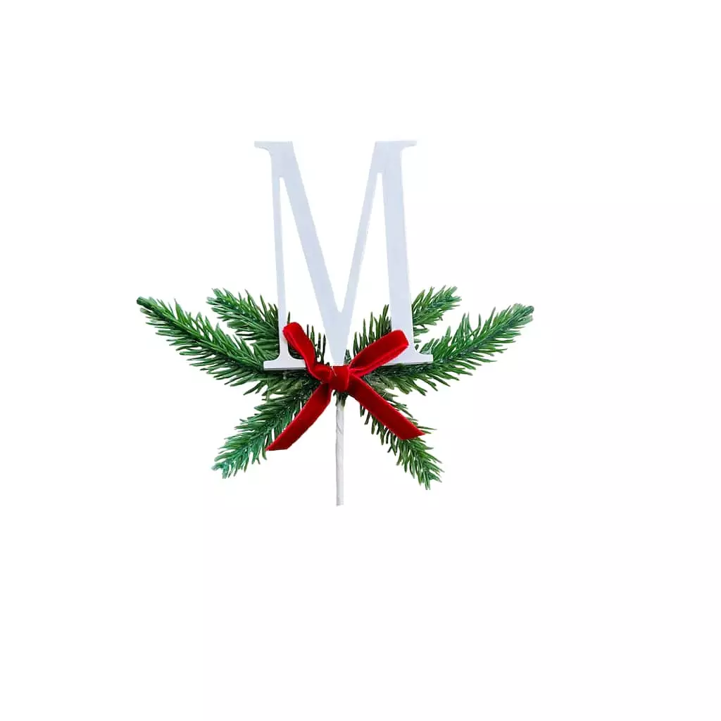 Transform your Christmas floral arrangement with this Christmas-themed letter “M” pick. Combine it with glittery poinsettias, frosted pinecones, and holly berries to create the perfect display!