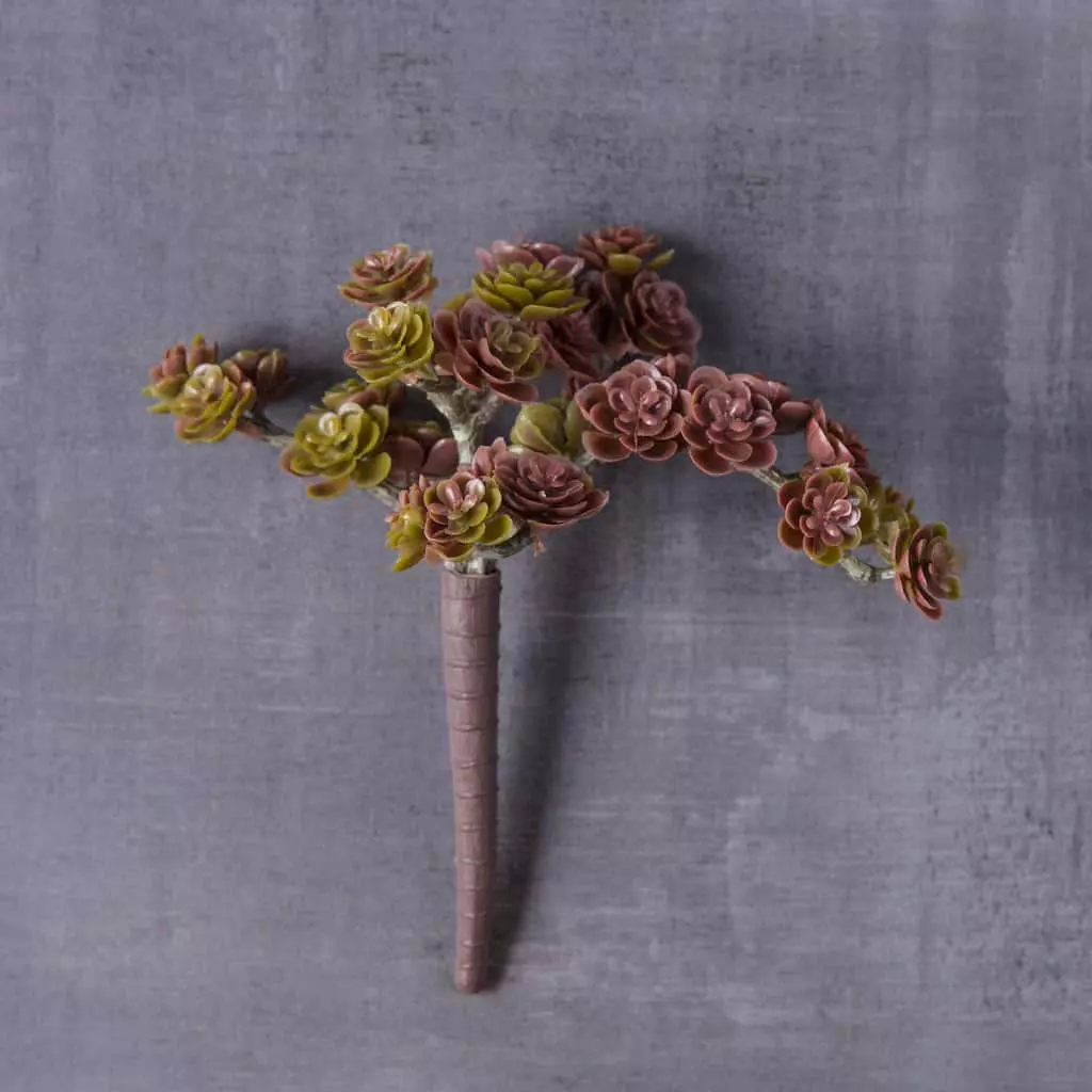 Add color to your rustic country style wedding with the creeping red sedum pick by Ashland. Pair other beautiful picks with this to create a realistic planter box arrangement. Use the pick to decorate a wreath or place several of these in a galvanized vase or basket for a simple centerpiece.