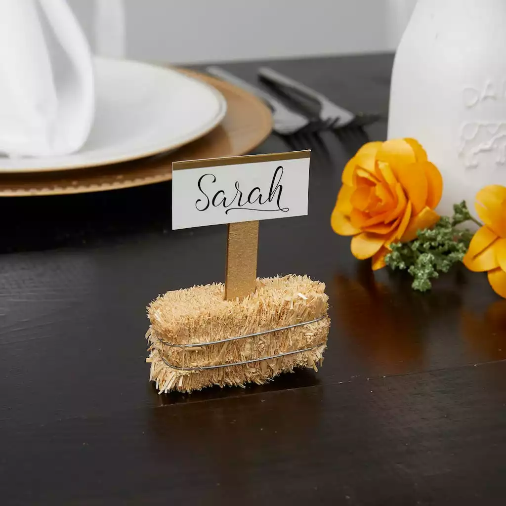 This decorative straw bale is made from high-quality, natural, barley straw. Sun-baked straw has a rich, golden color that is perfect for indoor or outdoor home décor and is bound with durable, rust-resistant, galvanized wire. Display one bale by itself or stack a few together to create a fall display. The 2.5″ straw bale size is great for adding a rustic, farmhouse-chic or western style to special events like weddings, birthdays, engagement parties, baby and bridal showers and graduation parties.