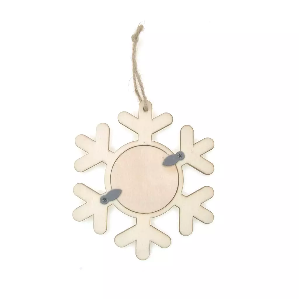 Decorate your tree with this lovely DIY snowflake ornament. You can customize this ornament by placing a photo inside and embellishing with paint, glitter, vinyl and more. This ready-to-hang wood ornament will look great paired with festive and classic ornaments.