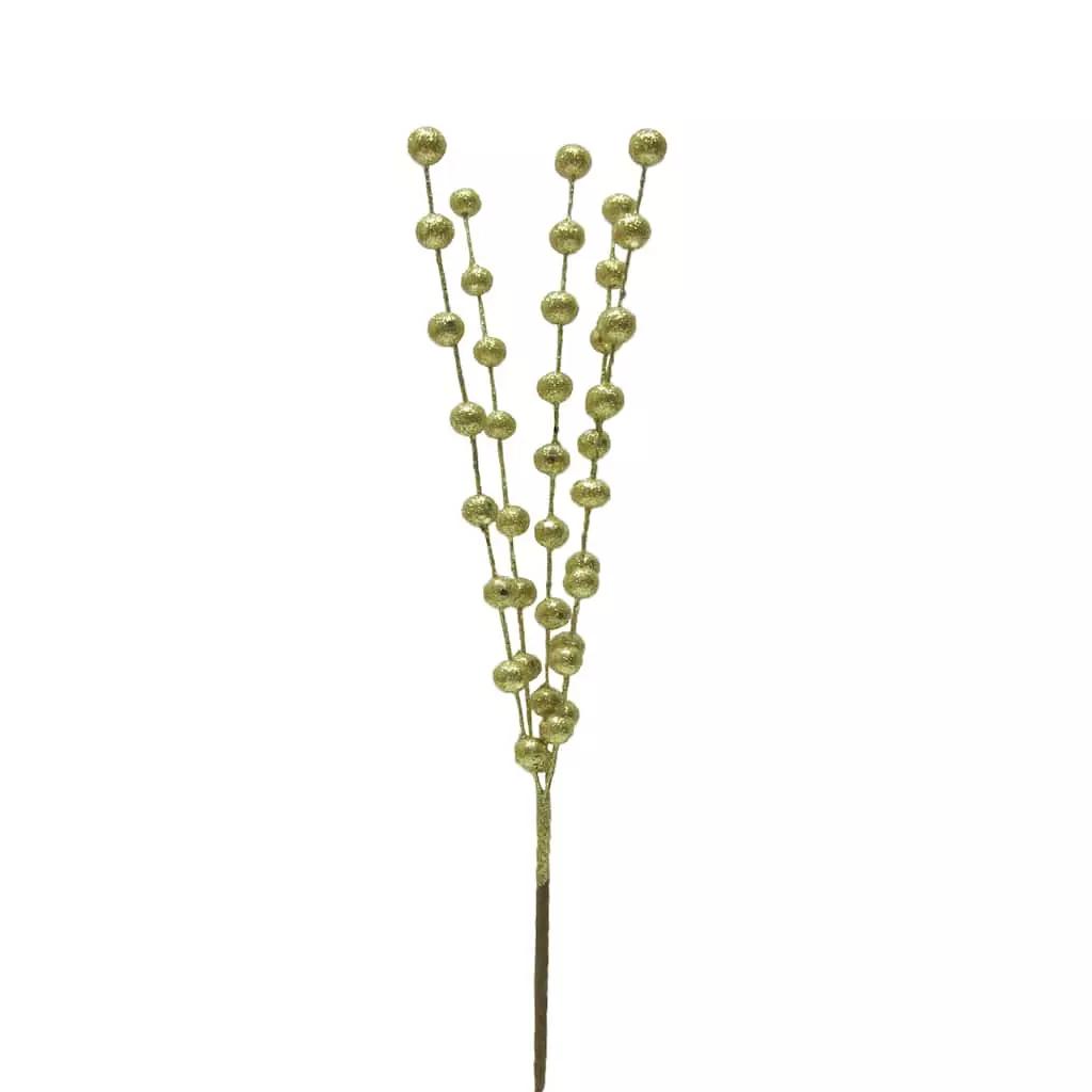 Give your holiday wreaths and floral arrangements a fun shimmery touch with this glittery gold berry pick from Ashland. This piece will beautifully accent snowy white blooms and evergreen branches in a ceramic vase for the Christmas season.