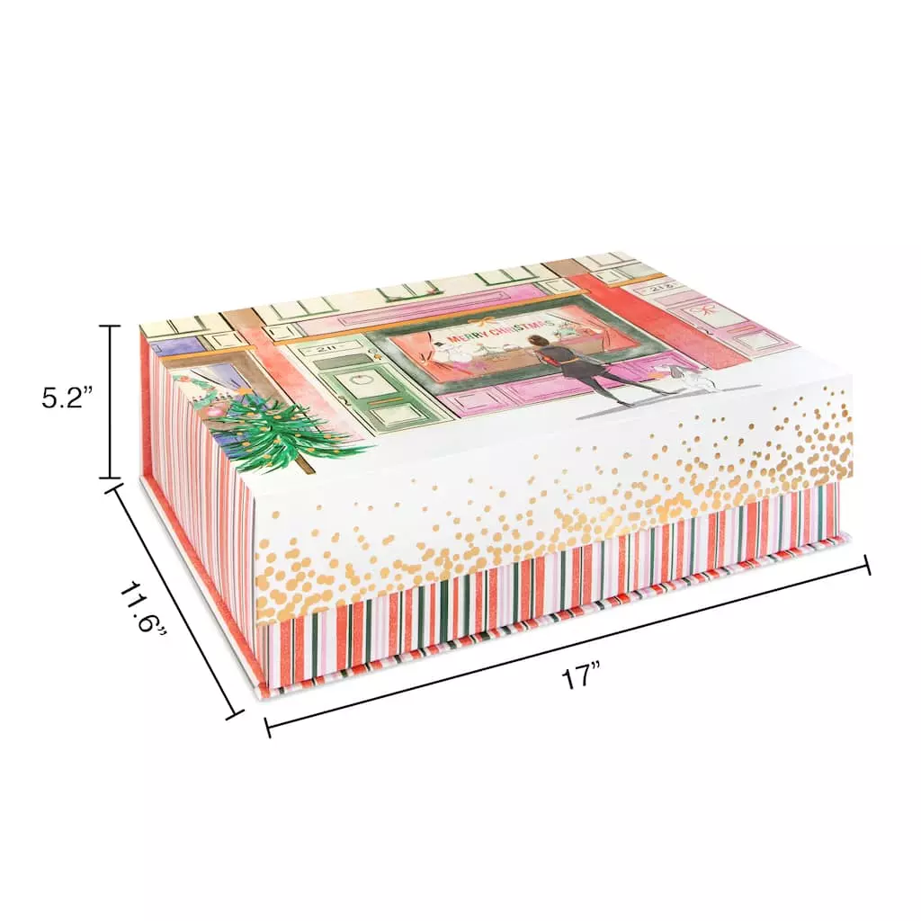 This flip top decorative box is the perfect piece for your home décor and storage. It features a seasonal design and decorative stripes on the flap.