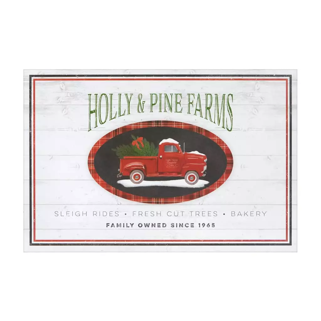 This flip top decorative box is the perfect piece for your home décor and storage. It features a seasonal design with a red truck and Christmas trees in the truck bed.
