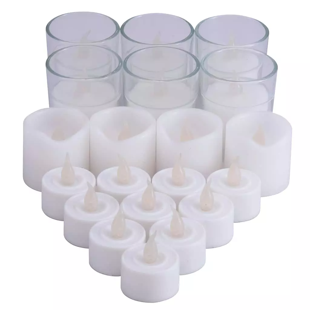 - 10 LED tealights (1.5″ x 1.41″ diameter)