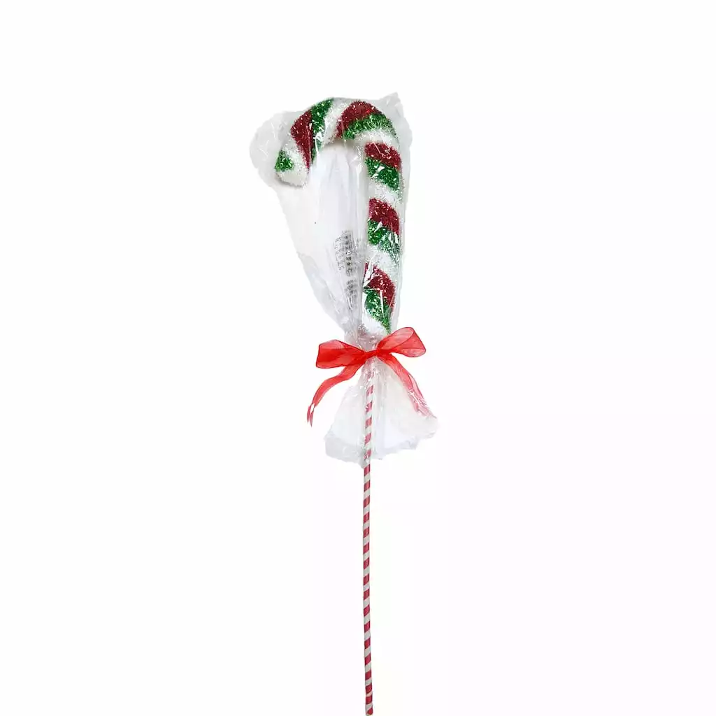 This red, white, and green candy cane stem is perfect for adding a whimsical flair to a Christmas floral arrangement. Pair it with large white poinsettias for an extra festive appeal.ย