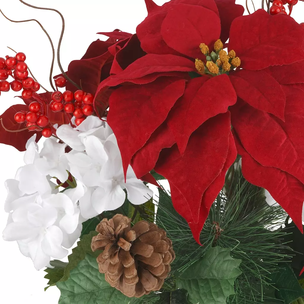 Decorate your home with this beautiful poinsettia and hydrangea bush by Ashland. It will look lovely for the holiday season in a vase full of greenery.