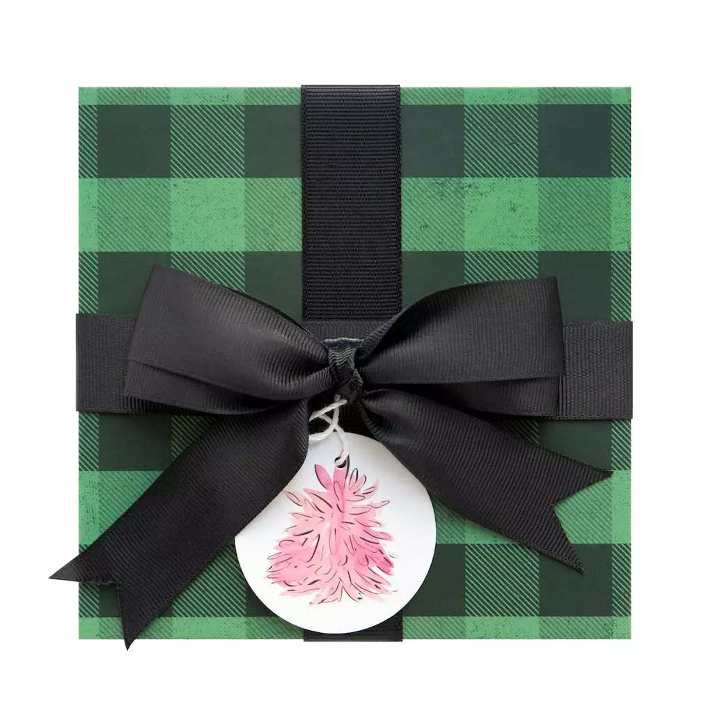 Featuring a fun pattern of tree illustrations with a green buffalo plaid lid, this charming box is a fantastic way to dress up your holiday presents with festive flair. With a pretty satin bow and coordinating tag, use for decorating under the tree or to hold a special gift sure to stand out as you celebrate the Christmas season with your loved ones.