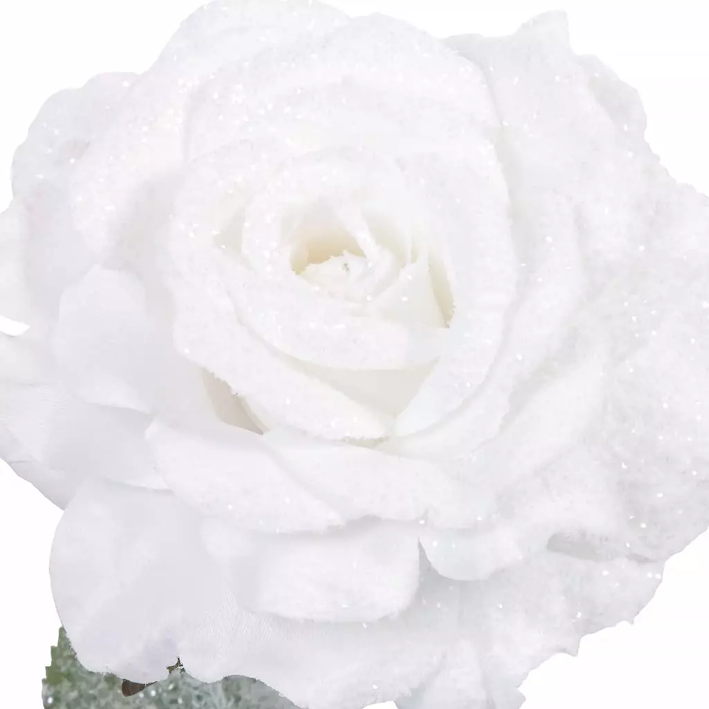 Add a decorative touch to your holiday bouquet with this white rose stem by Ashland. Pair it with poinsettias and greenery in a glass vase for a festive centerpiece.