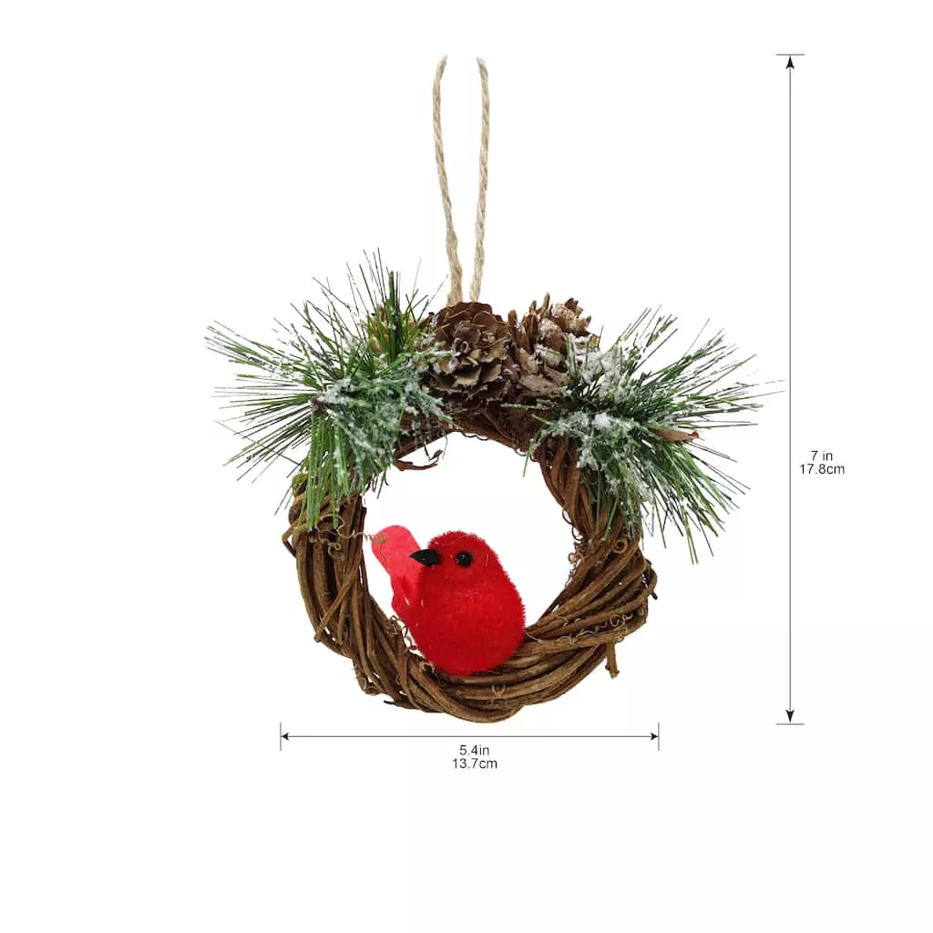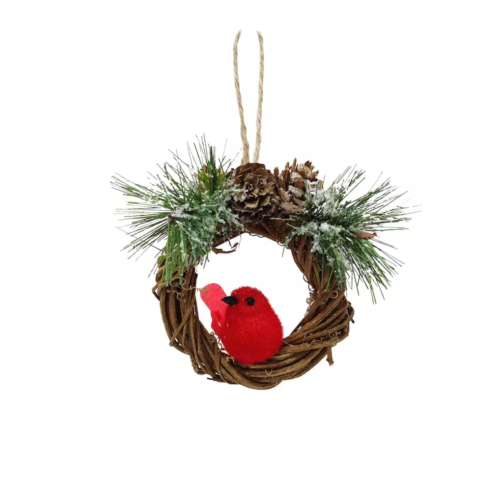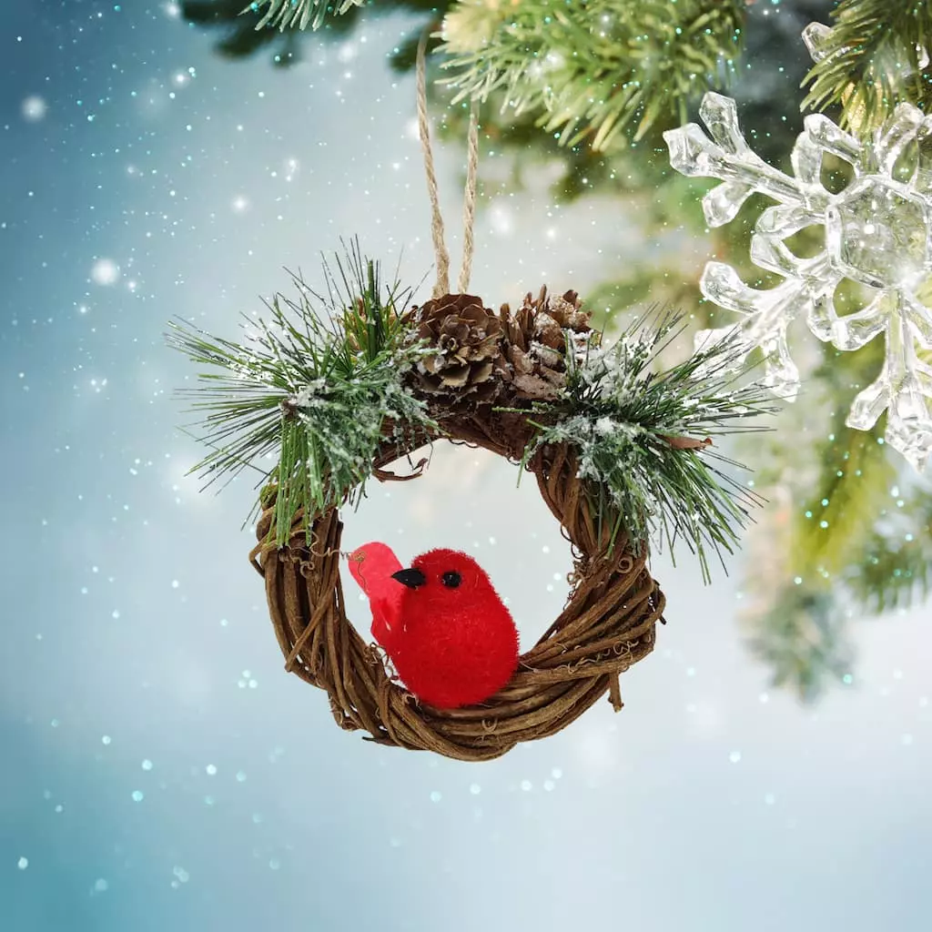 This wreath ornament features a cardinal sitting in the center and will be the perfect addition to your holiday decoration collection. Hang it on display on a Christmas tree or ornament stand.